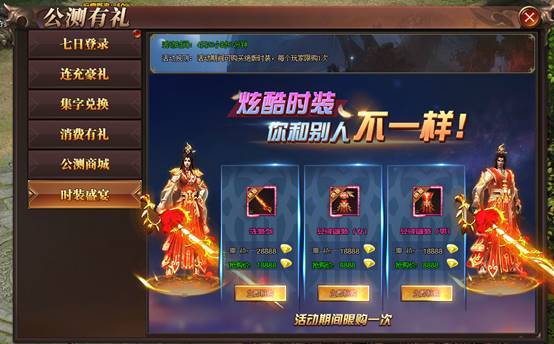 6. 时装盛宴:活动期间,可购买限量绝版时装,每个时装限购1次。