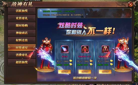 6. 时装盛宴:活动期间,可购买限量绝版时装,每个时装限购1次。